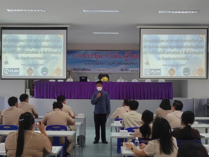 วันจันทร์ที่ 6 มิถุนายน 2565 เวลา 09.00 น. นางสาวสิริภรณ์ ยานะโส ได้เข้าร่วมประชุมซักซ้อมแนวทางการดำเนินการแก้ไขปัญหาสถานะทางทะเบียนราษฎรของเด็กนักเรียนที่มีเลขประจำตัวขึ้นต้นด้วยตัวอักษร G พื้นที่อำเภอฝาง ณ ที่ว่าการอำเภอฝาง จังหวัดเชียงใหม่