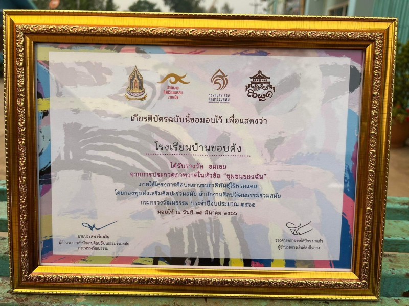 วันเสาร์ที่ 25 มีนาคม 2566 โรงเรียนบ้านขอบด้ง นำโดย นายสุนทร เกษเกษี ผู้อำนวยการโรงเรียน ตัวแทนคณะครูและนักเรียนโรงเรียนบ้านขอบด้ง ได้เข้าร่วมงานนิทรรศการ และส่งมอบผลงานศิลปะ ในโครงการศิลปะเยาวชนชาติพันธุ์ไร้พรมแดน